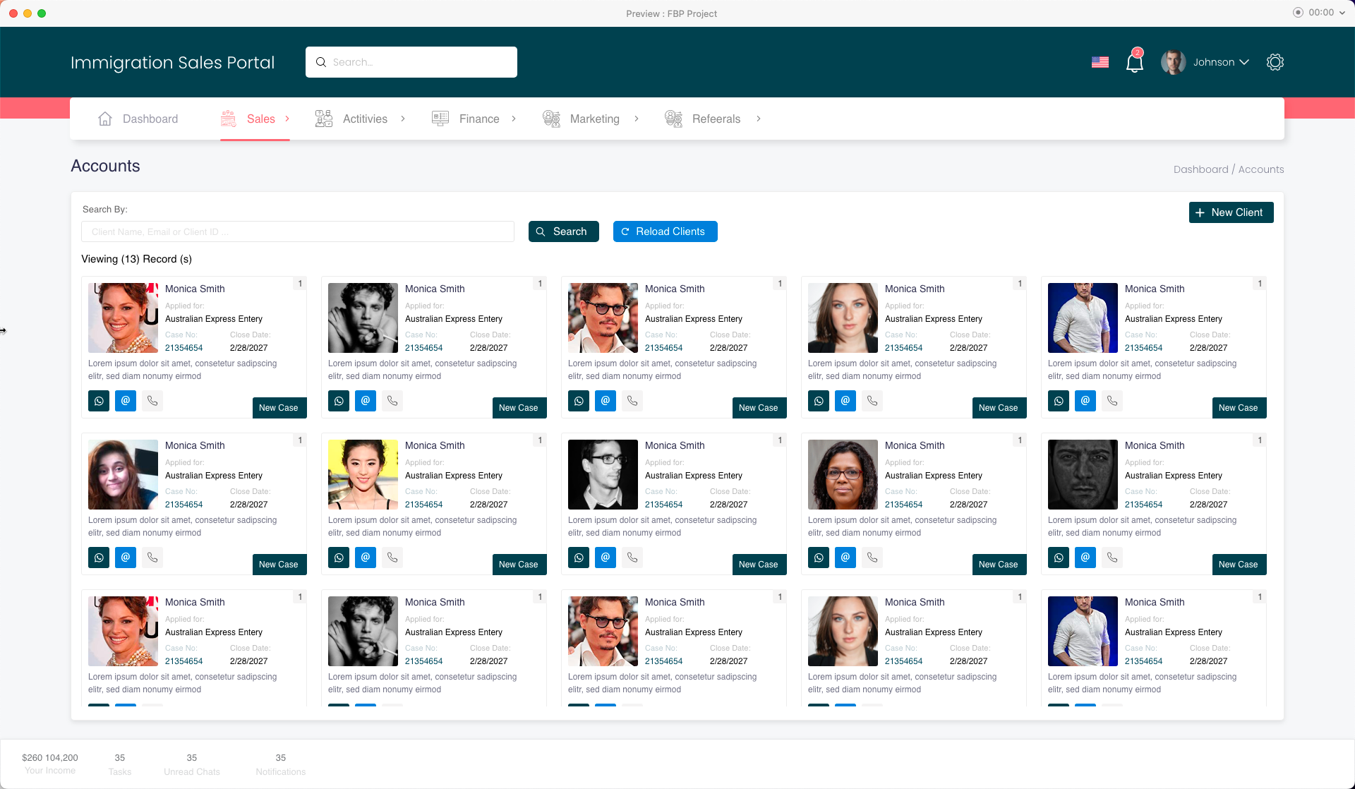 The Immigration Portal is a comprehensive system designed for immigration consultants to manage and streamline the visa application process. Consultants can upload documents, which the system then processes using OCR technology to pre-fill application forms. The portal tailors the application requirements based on each country’s specific visa regulations, creating a seamless onboarding journey for filling out necessary documents. Additionally, the platform functions like a CRM, allowing consultants to keep tabs on each application’s progress, manage client interactions, and ensure timely updates and follow-ups.