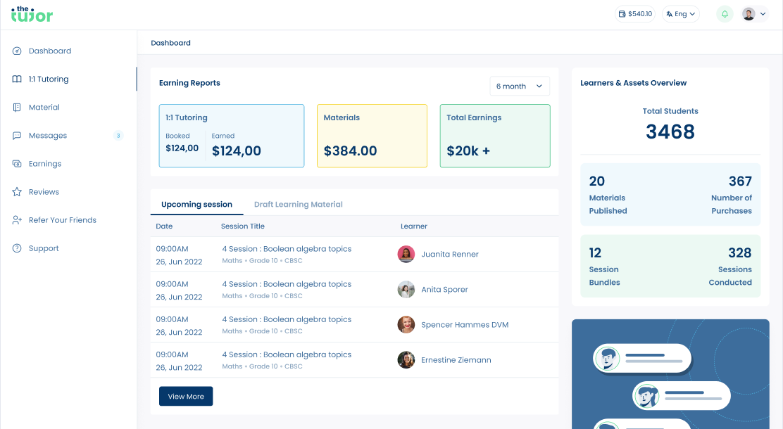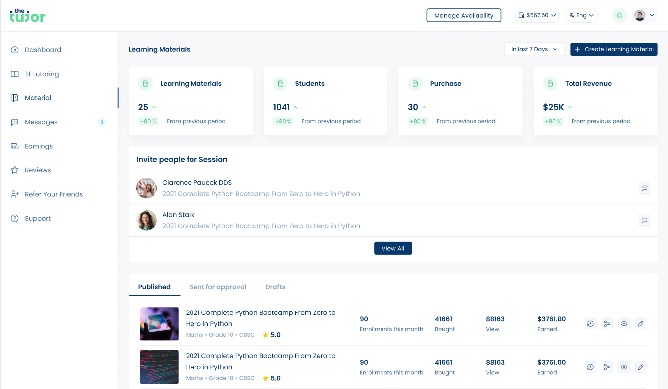 TheTutor.me democratizes personalized learning, making it accessible and affordable. Our platform allows subject experts to become online tutors and sell learning materials, while students find their perfect match based on style, language, schedule, and cost.
